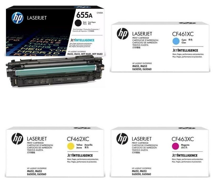HP Картриджи комплектом HP CF462XC-CF463XC-CF461XC-CF450A 656X, 655A полный набор информация: