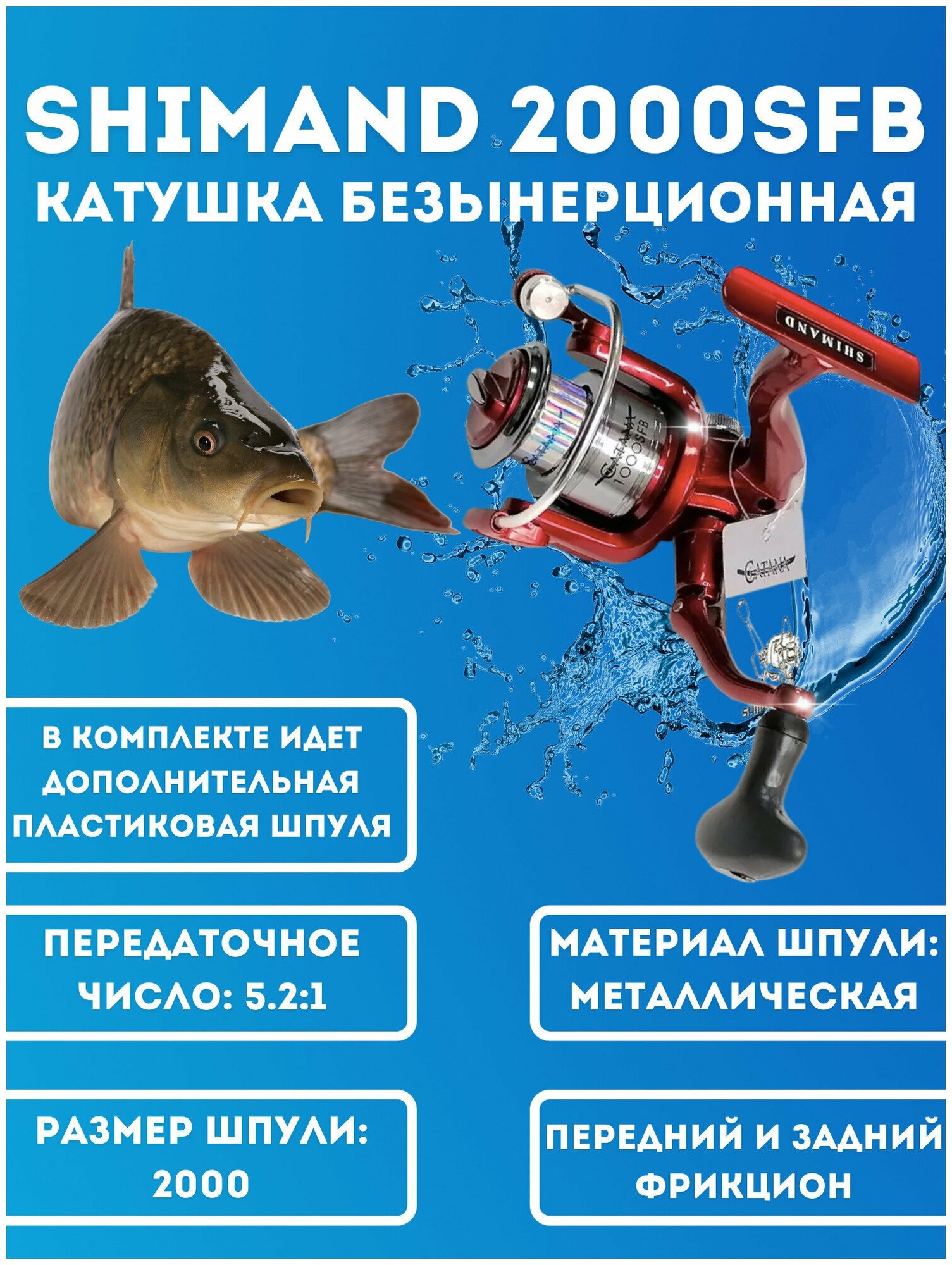 Катушка рыболовная Shimand 2000SFB подшипник, Катушка для спиннинга информация: