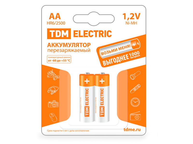 Аккумулятор AA - TDM-Electric 2500mAh Ni-MH BP-2 SQ1702-0071 (2 штуки)