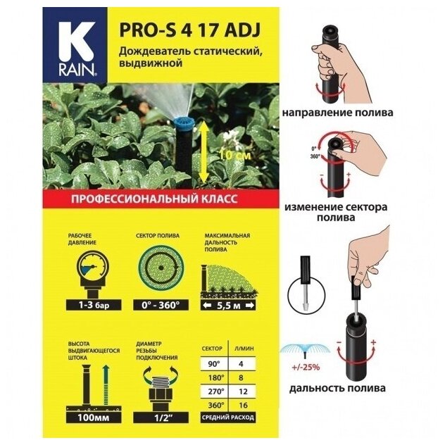 Дождеватель выдвижной K-Rain PRO-S 417ADJ радиус 5,5 м угол 0-360 градусов информация: