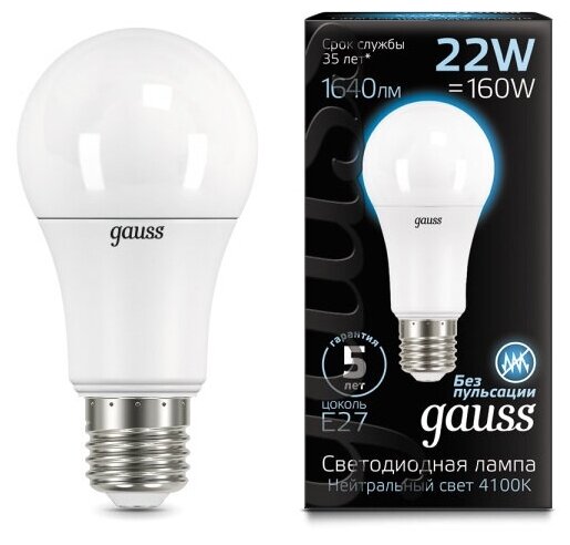 Лампа Gauss LED A70 22W E27 1640lm 4100K 102502222 информация: