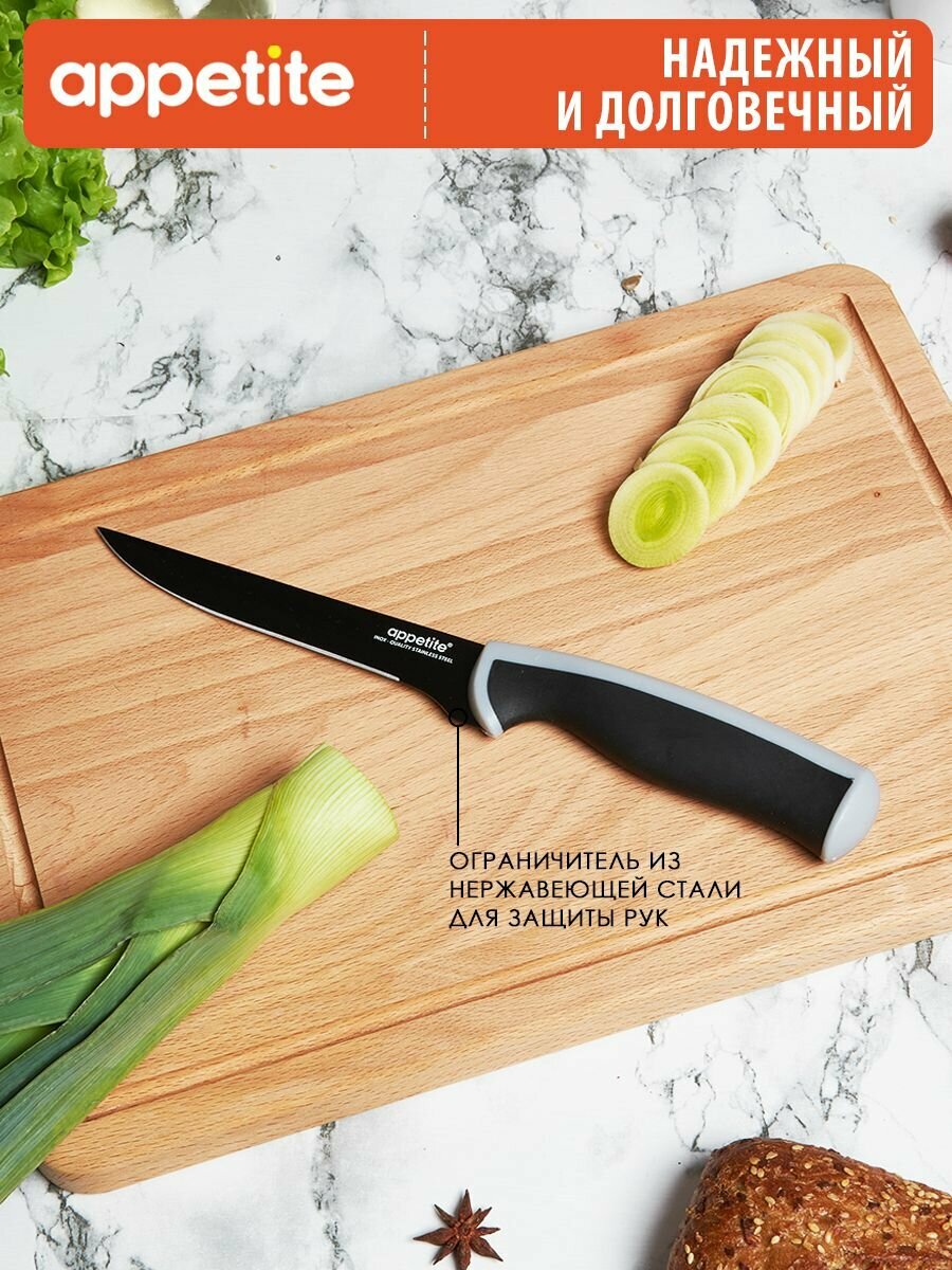 Отзывы на Нож из нержавеющей стали Эффект универсальный 15см серый ТМ Appetite