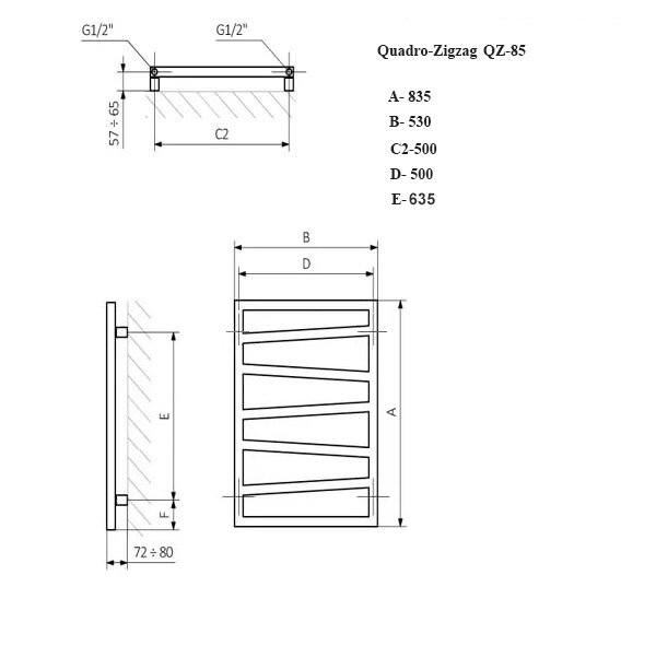 Quadro Zigzag VIP 84x50 (см) полотенцесушитель водяной информация: