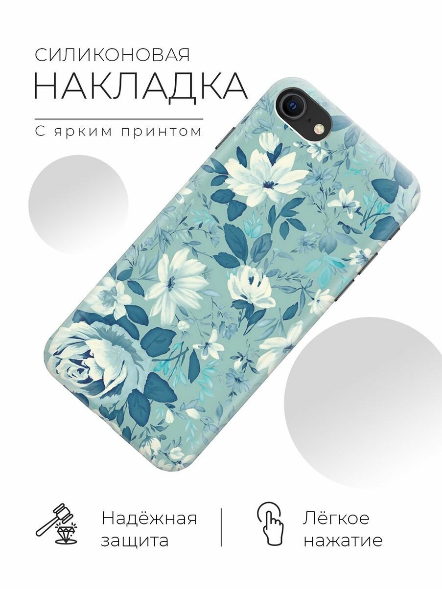 Чехол - накладка ArtColor для Apple iPhone 7 / 8 / SE (2020) с принтом "Цветы на голубом" информация: