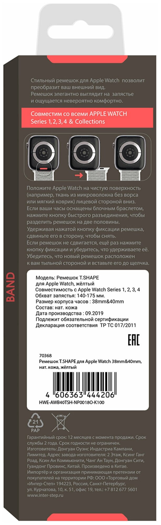 | Совместимость | Apple Watch 38 мм / Apple Watch 40 мм |