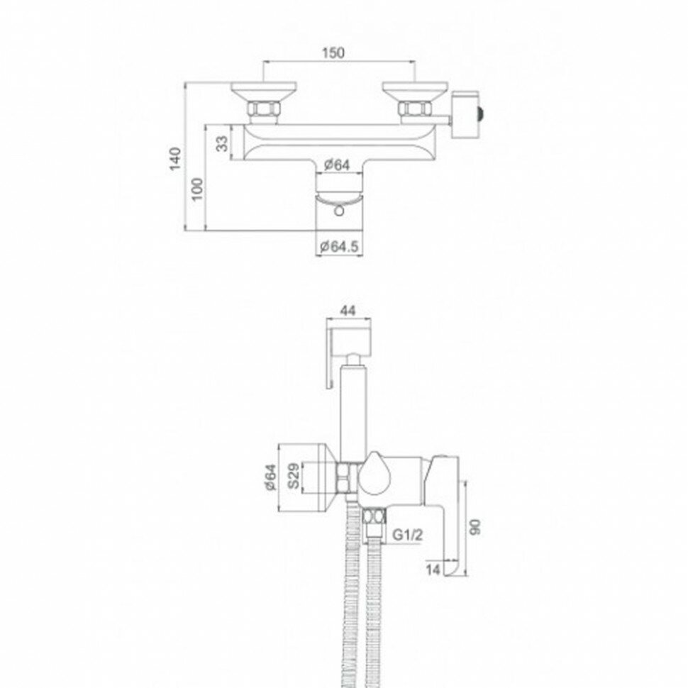 Смеситель для ванны Orange ALFI двухвентильный с душевым набором, глянцевый хром