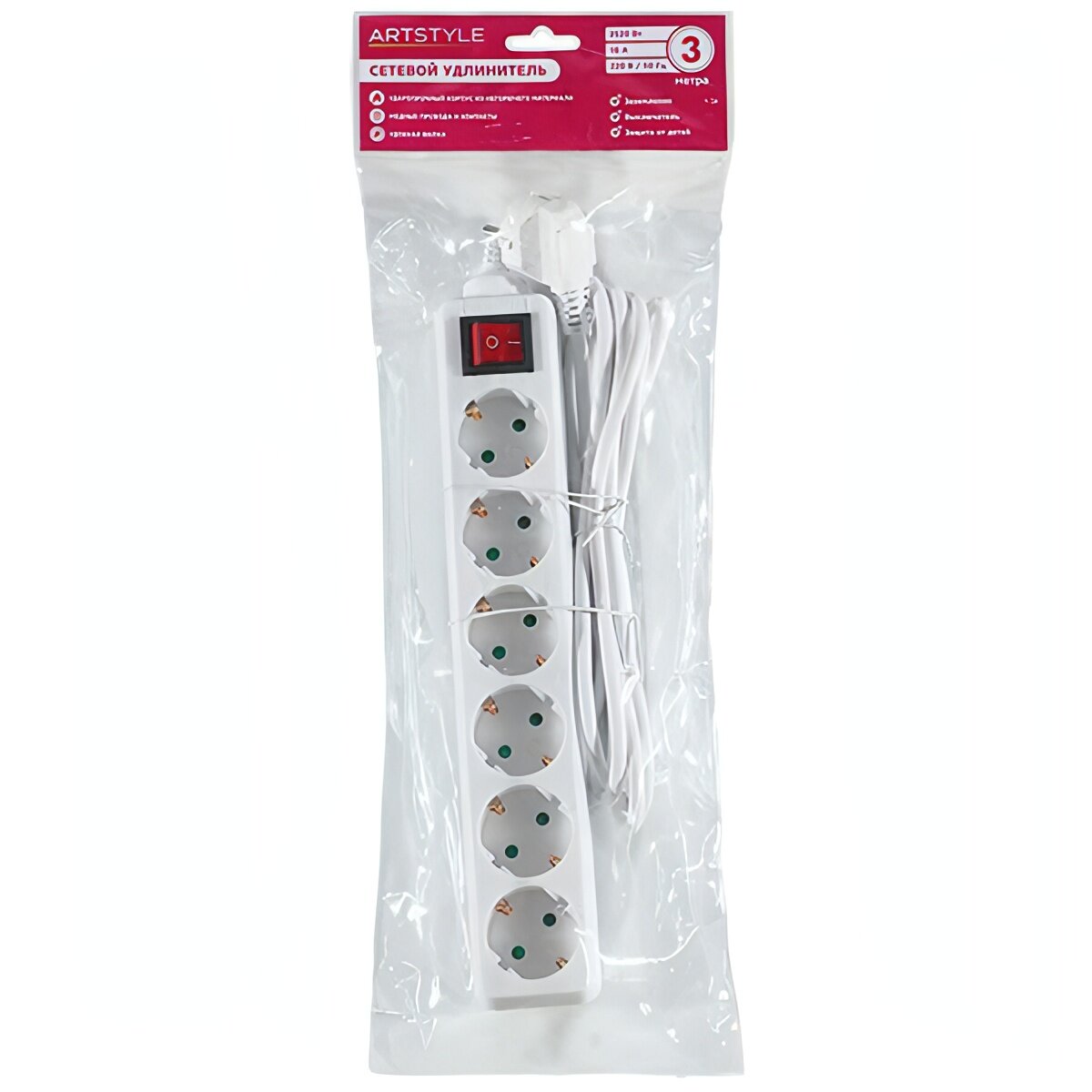 10 цен на Сетевой удлинитель, CL- C63GSW, ARTSTYLE, белый, 6гн 3м, с/заз с/выкл цена за 1 шт.