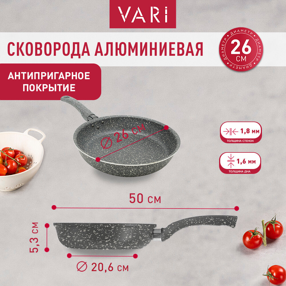 Отзывы на Сковорода с антипригарным покрытием VARI "Города Италии" 26 см серый гранит