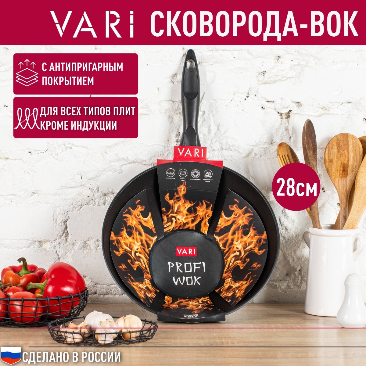 Сковорода profi WOK, d=28см, д/всех типов плит (кроме индукции) PW35128 VARI информация: