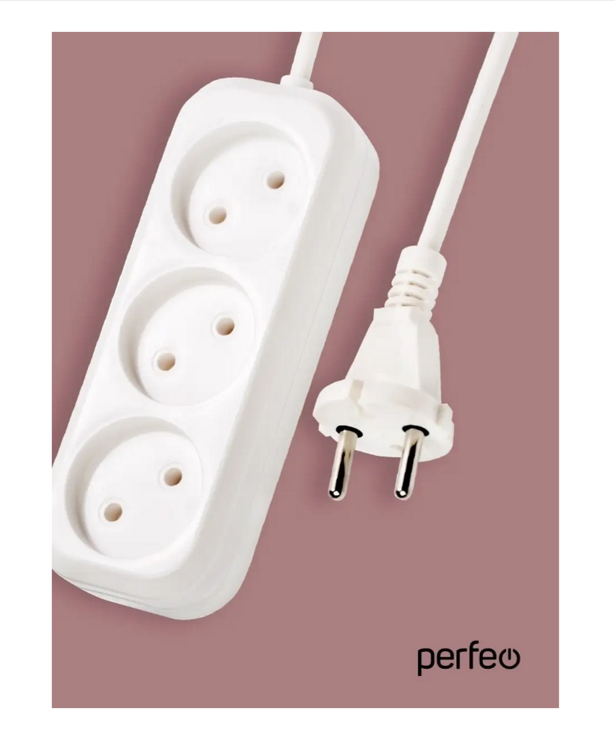 Сетевой удлинитель Perfeo без заземления "RU POWER", 1,5м, 3 розетки, белый (PF_B4061)