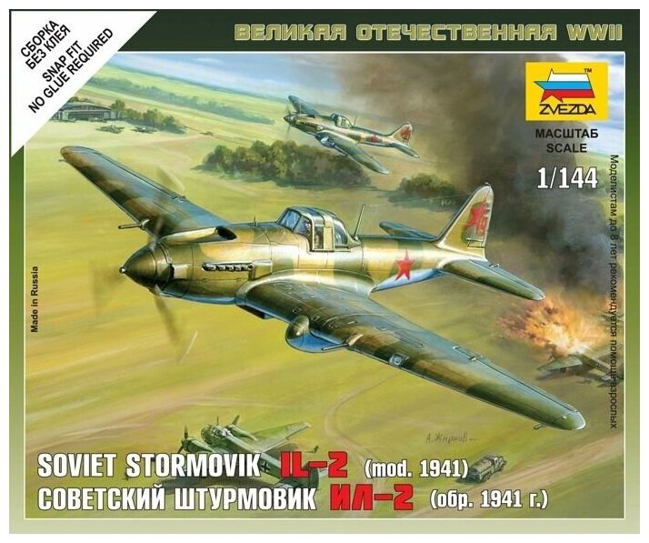 Сборная модель ZVEZDA Штурмовик Ил-2 обр. 1941г 1/144 (без клея) информация: