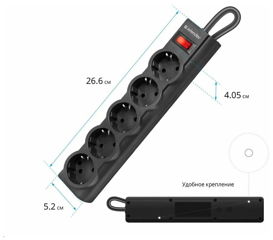 Сетевой фильтр Defender ES largo 5 розеток 1.8м информация: