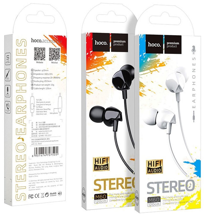 Отзывы на Гарнитура HOCO m60 Perfect sound с микрофоном, 3.5 Jack, белый