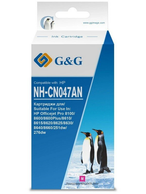 Картридж струйный G&G NH-CN047AN CN047AE пурпурный (26мл) для HP DJ Pro 8100/8600 информация: