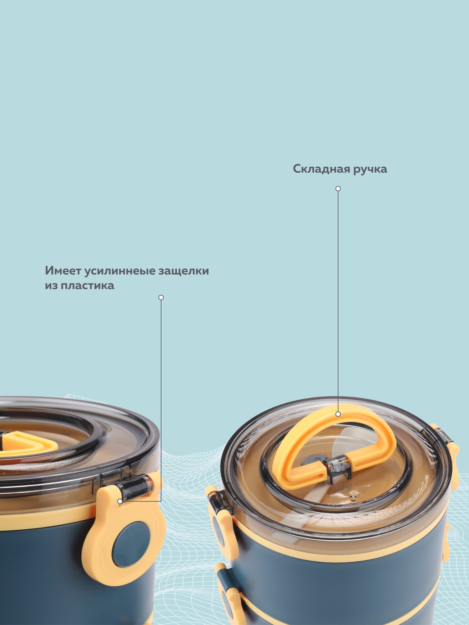 Ланч бокс (контейнер) для еды 2,2 л, синий, ложка, 3 секции, Термосович информация: