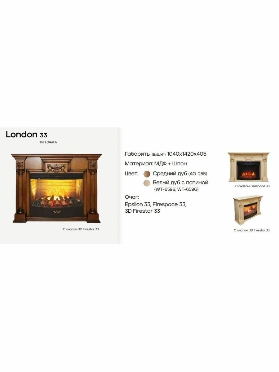 Электрокамин RealFlame London 33 АО-255 с очагом Firespace 33 информация: