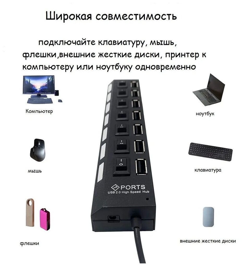 0 отзывов, средняя оценка 0. Чтобы купить «USB Hub 2,0 / USB разветвитель на 7 интерфейсов 480 Мбит/с» по лучшей цене мы сканируем авито, алиэкспресс, маркет, озон, савеловский, плеер, горбушку, беру, официальные сайты и находим минимальную. Администрация не несет ответсвенность актуальность цен на USB Hub 2,0 / USB разветвитель на 7 интерфейсов 480 Мбит/с, более подробно узнавайте на сайте магазина.