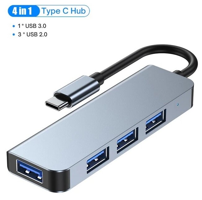 10 цен на Хаб USB-концентратор 4 в 1 /1xUSB3.0+3xUSB2.0/Type-C Gray