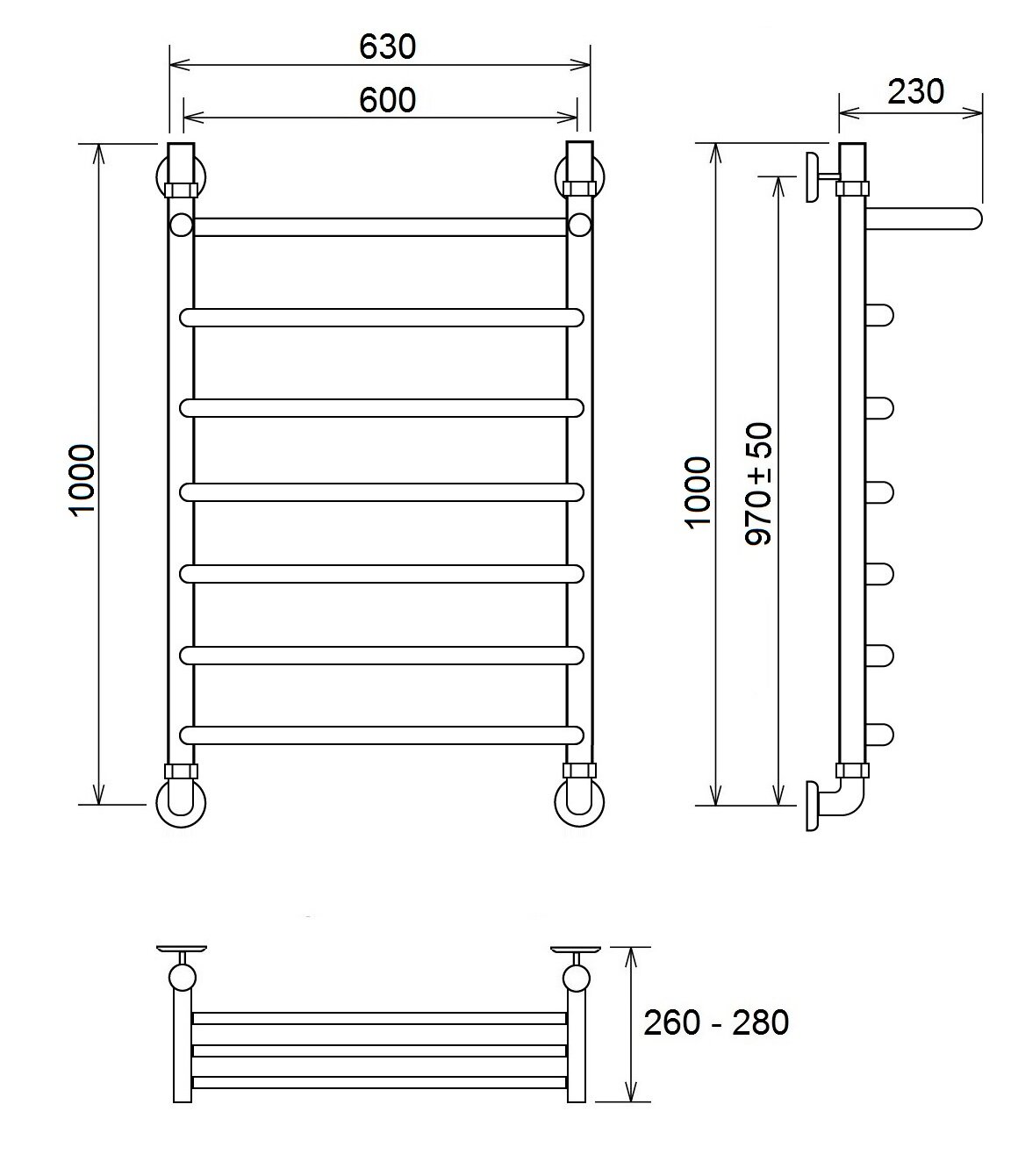 Водяной полотенцесушитель Акванерж Дуга с полкой 1000x600 информация: