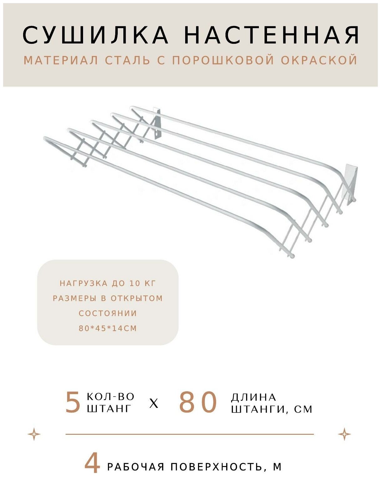 Сушилка для белья настенная раздвижная 80 см/ сушилка настенная металлическая информация: