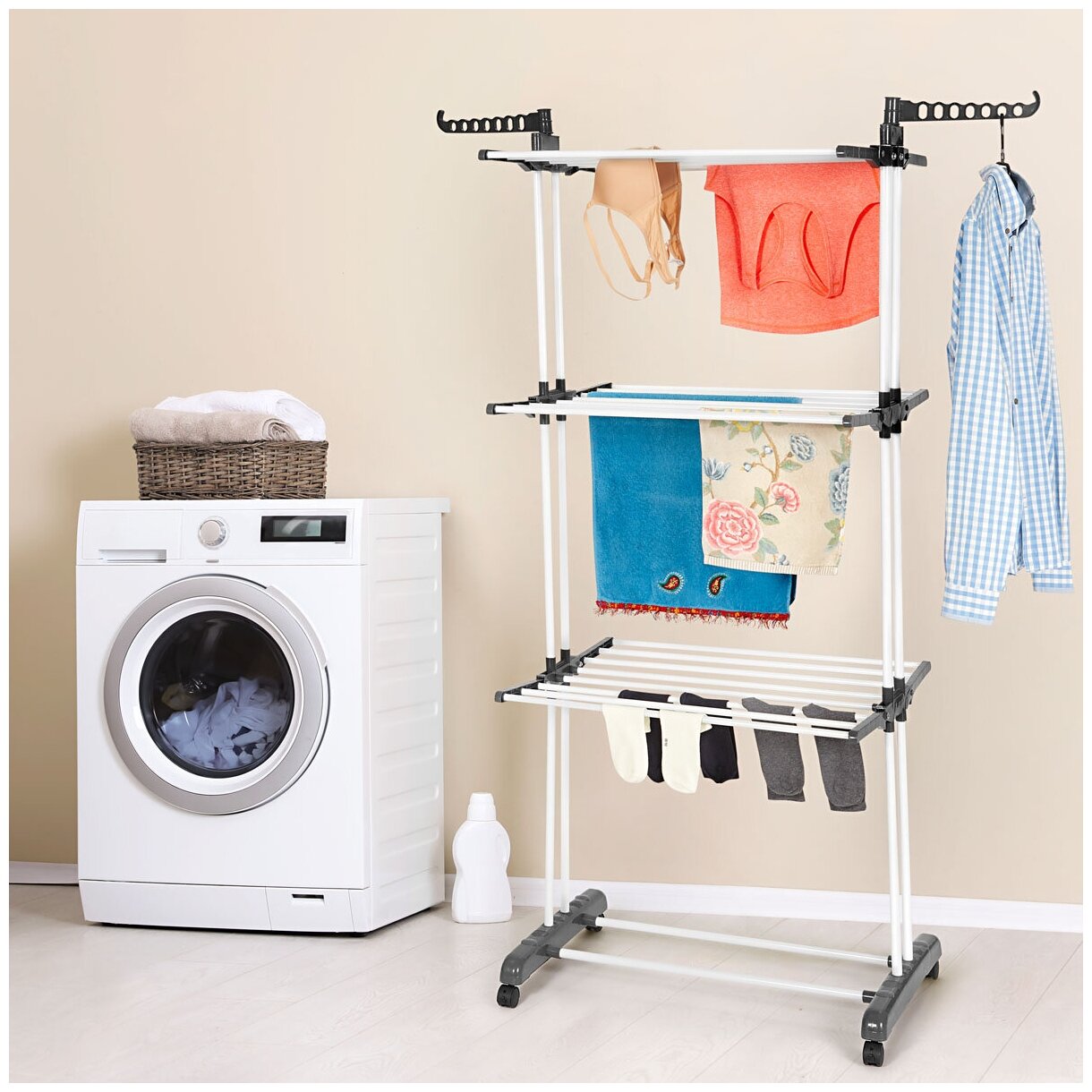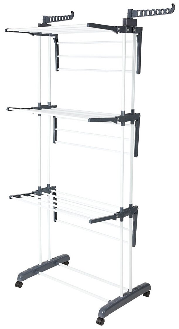 Сушилка для белья /вешалка для одежды напольная, 129х61х61, складная, 2 уровня, цвет серый