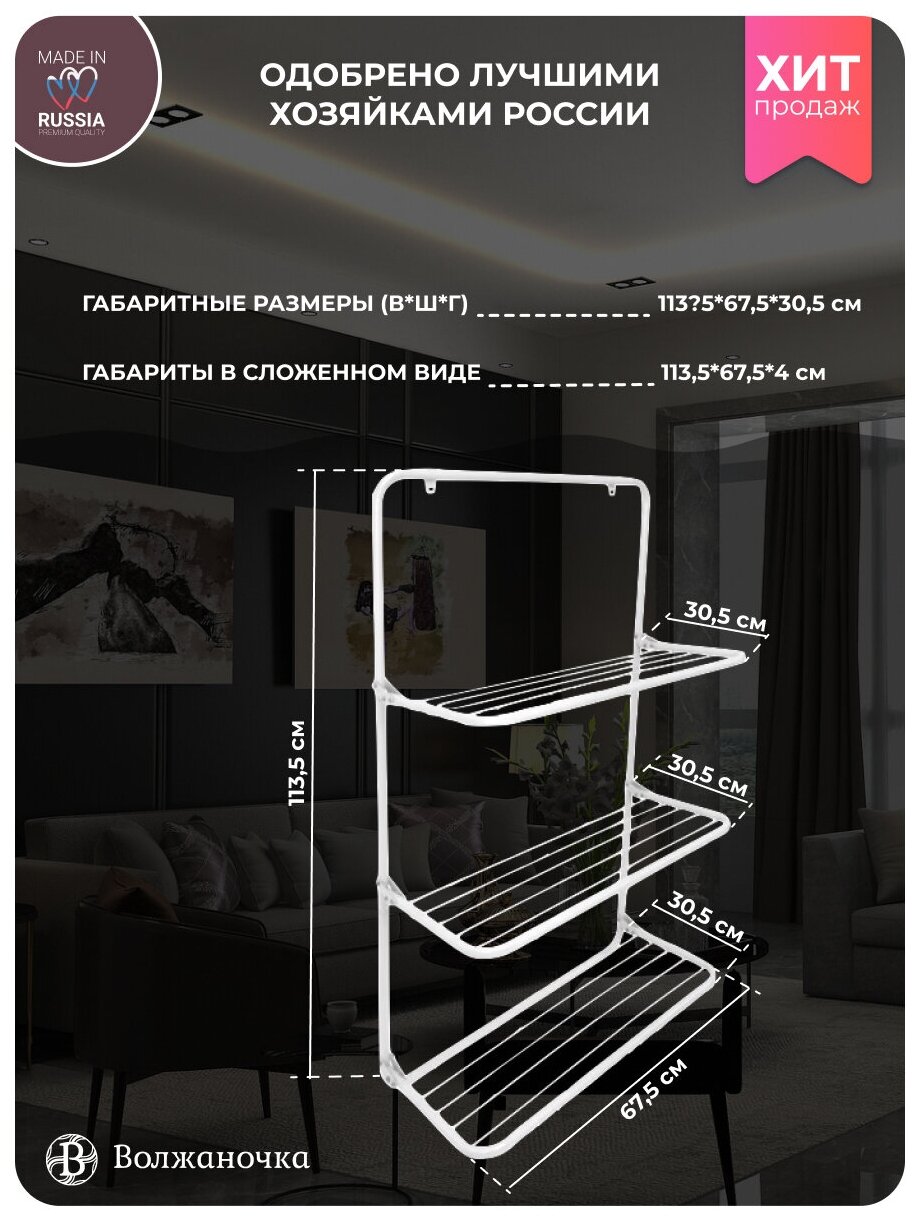 Сушилка для белья настенная 3-х ярусная, белый, 67х30 см информация: