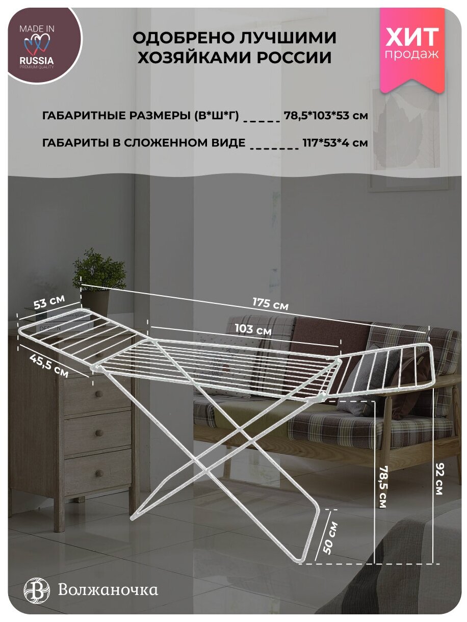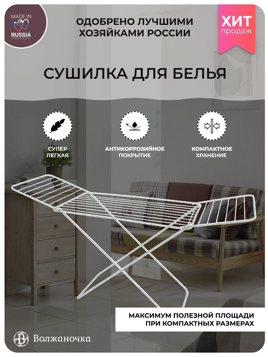 Сушилка для белья "Сказка " складная напольная, белый, 175х53 см информация: