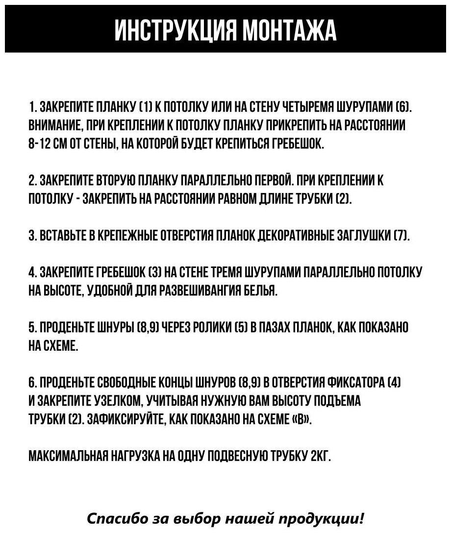 Сушилка для белья настенная/потолочная в ванную или балкон, 1,7м информация: