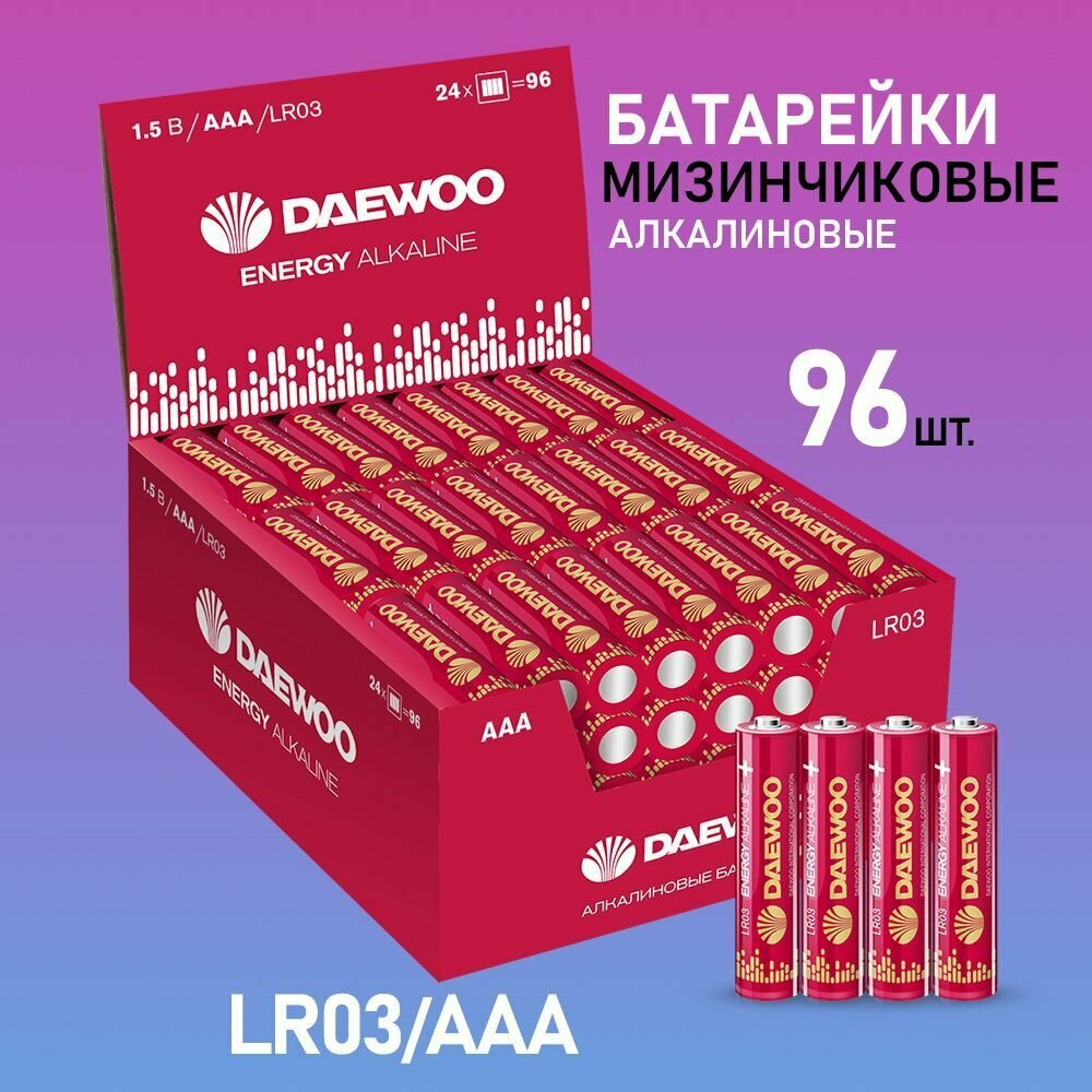Батарейки алкалиновые DAEWOO ENERGY ALKALINE ААА (LR03, мизинчиковые), 96 шт. (LR03EA-DB4) информация: