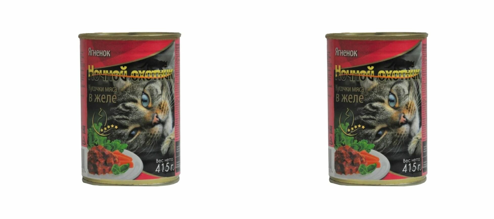 Ночной охотник корм для кошек, ягненок в желе, 415 грамм, 2 штуки в комплекте.