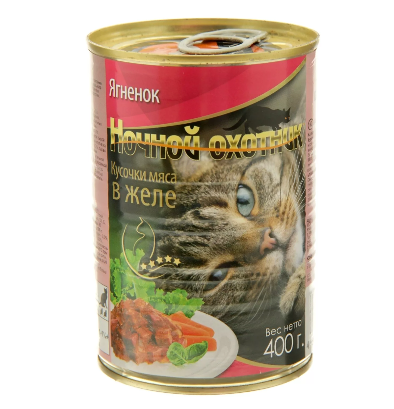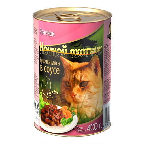 Ночной охотник консервированный корм для кошек Ягненок в соусе 400г информация: