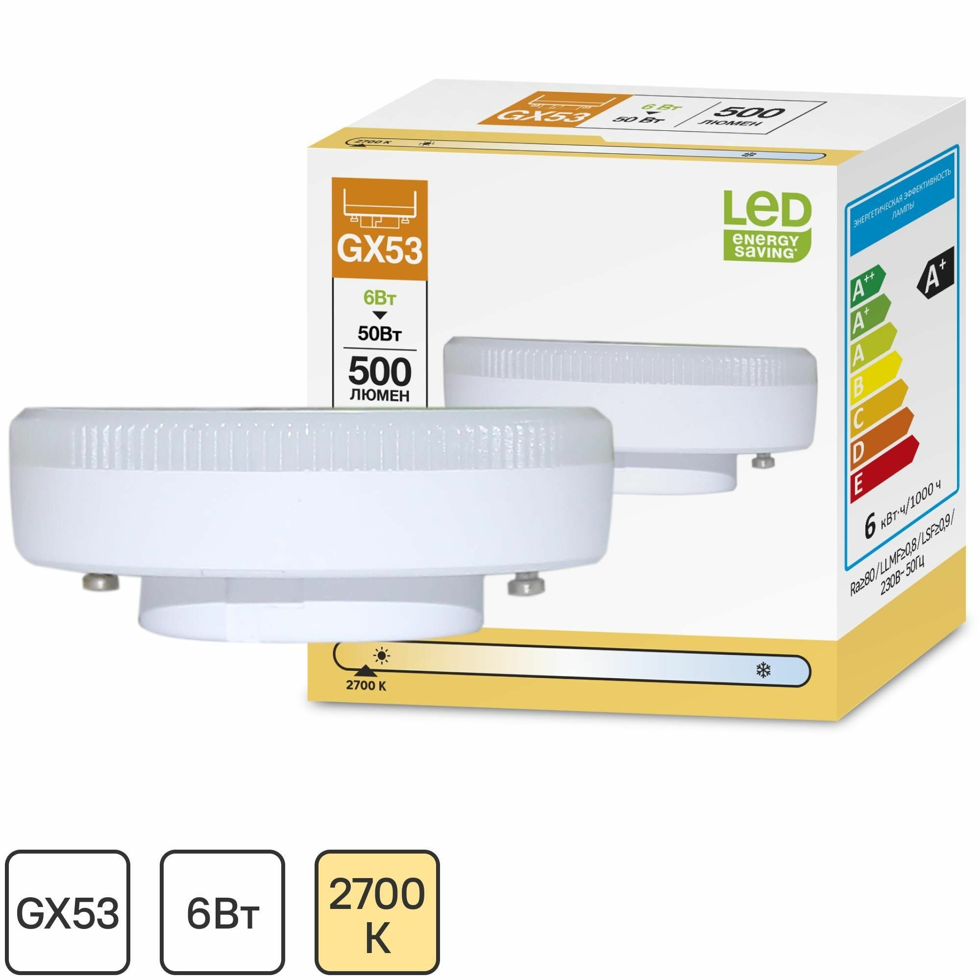 10 цен на Лампа светодиодная GX53 220-240 В 6 Вт круг матовая 500 лм теплый белый свет