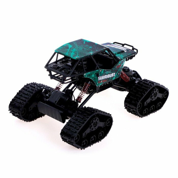 Джип радиоуправляемый «Гусеничный вездеход», полный привод 4WD, работает от аккумулятора, цвет зелёный информация:
