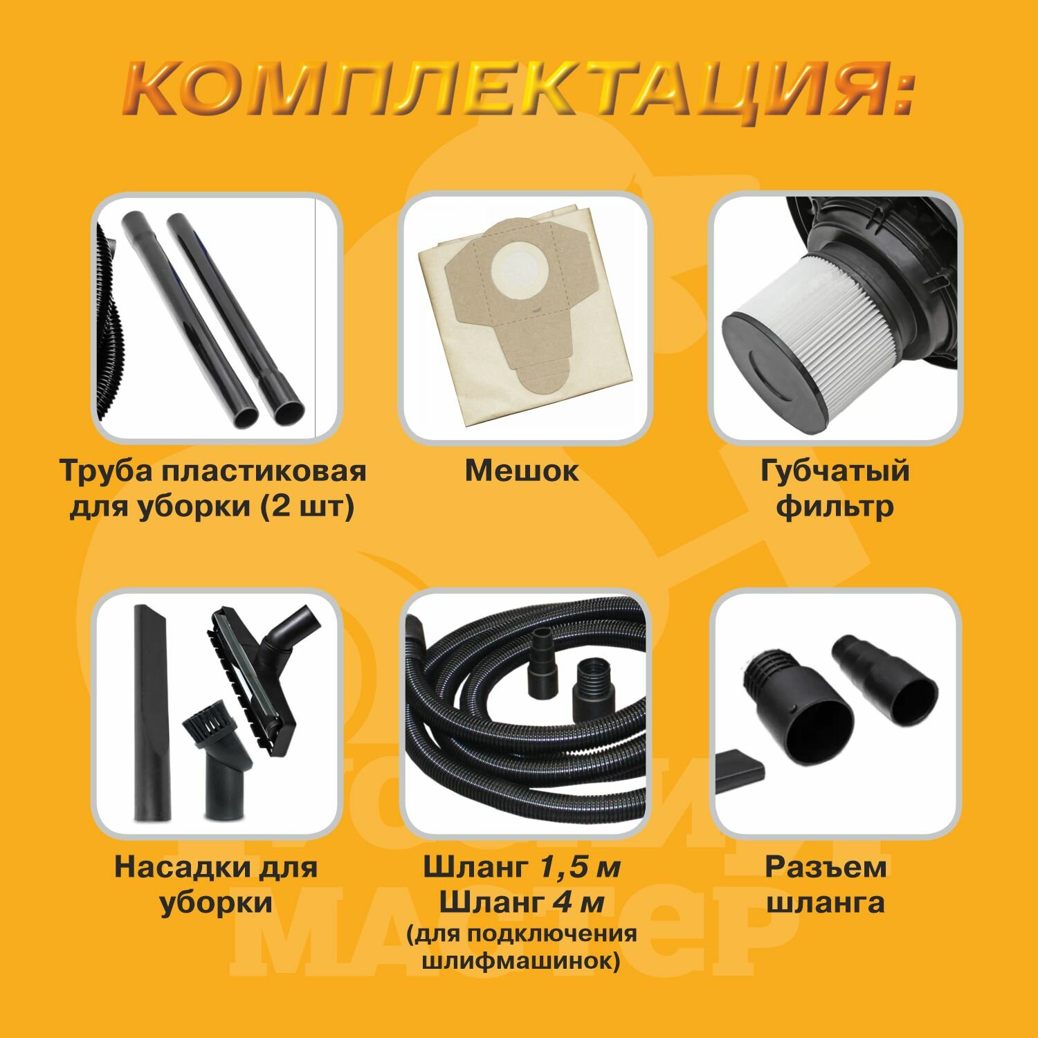 Русский Мастер Пылесос 1230E с автоматикой для электроинструмента РМ-97869 . информация: