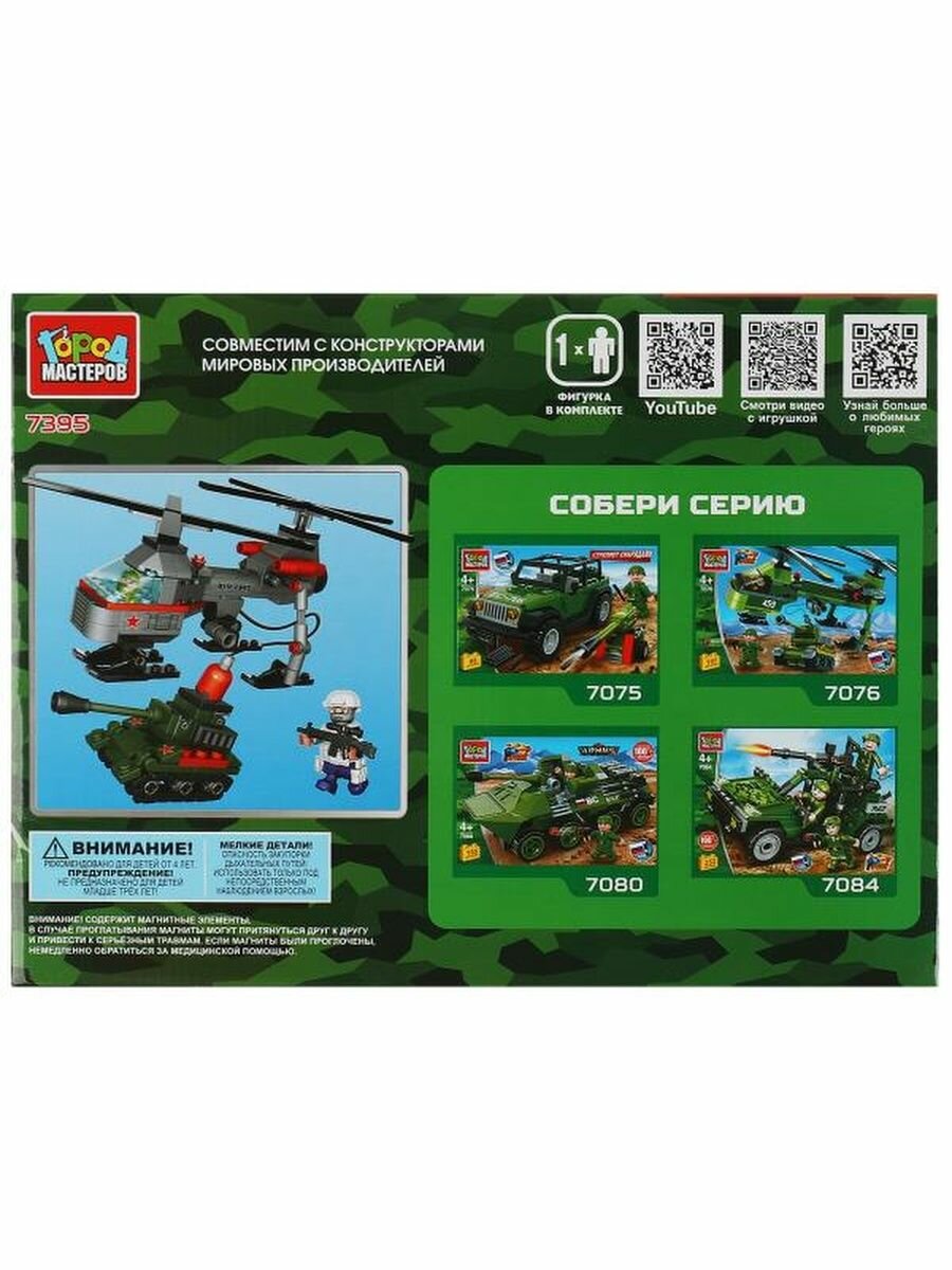Конструктор Город Мастеров вертолет перевозит танк (магнит), 196 деталей информация: