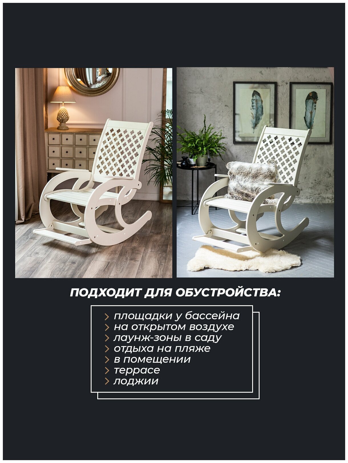 Отзывы на Кресло-качалка для дома и улицы, кресло качалка для взрослых садовое, Слоновая кость Ажурная спинка