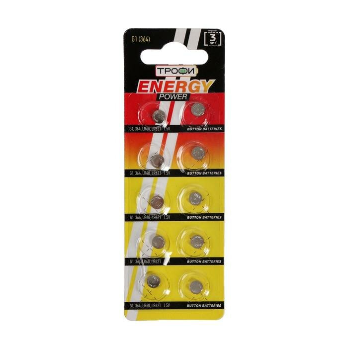 10 цен на Батарейка алкалиновая "Трофи" Alkaline Cell, G1 (364, LR621, LR60)-10BL, 1.5В, блистер,10 шт../В упаковке шт: 1