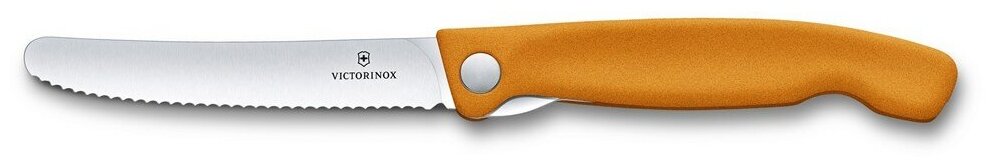 Нож для овощей VICTORINOX SwissClassic, складной, лезвие 11 см с волнистой кромкой, оранжевый информация: