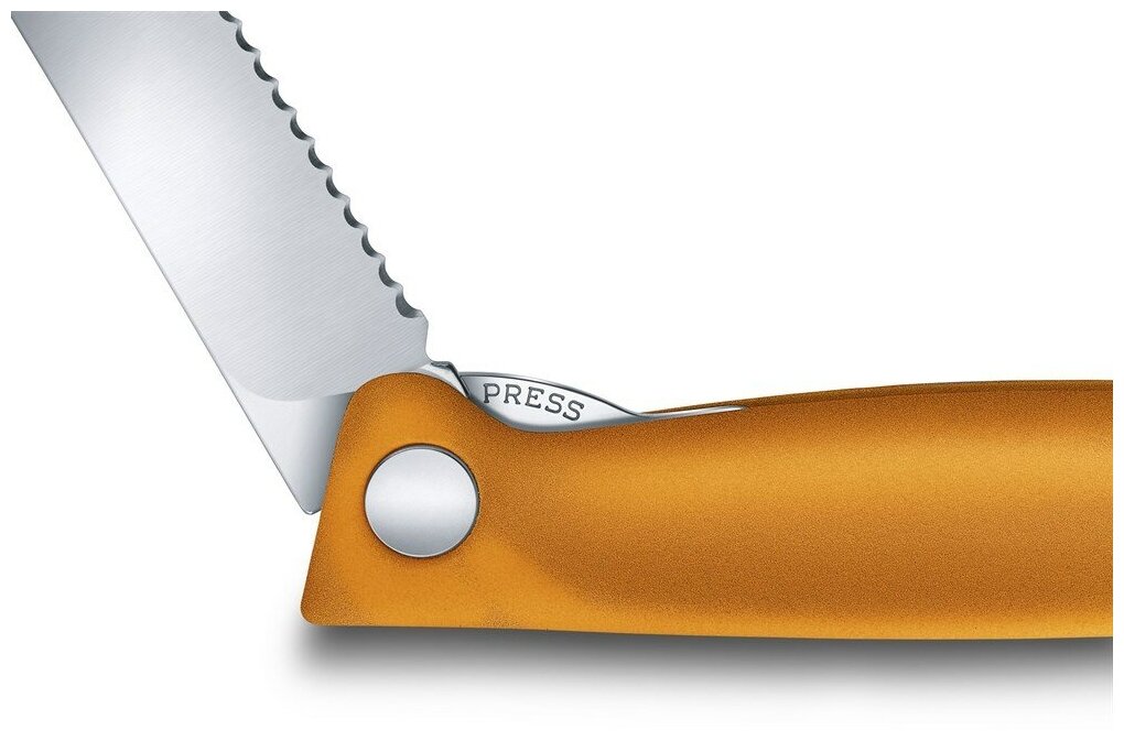 10 цен на Нож для овощей VICTORINOX SwissClassic, складной, лезвие 11 см с волнистой кромкой, оранжевый