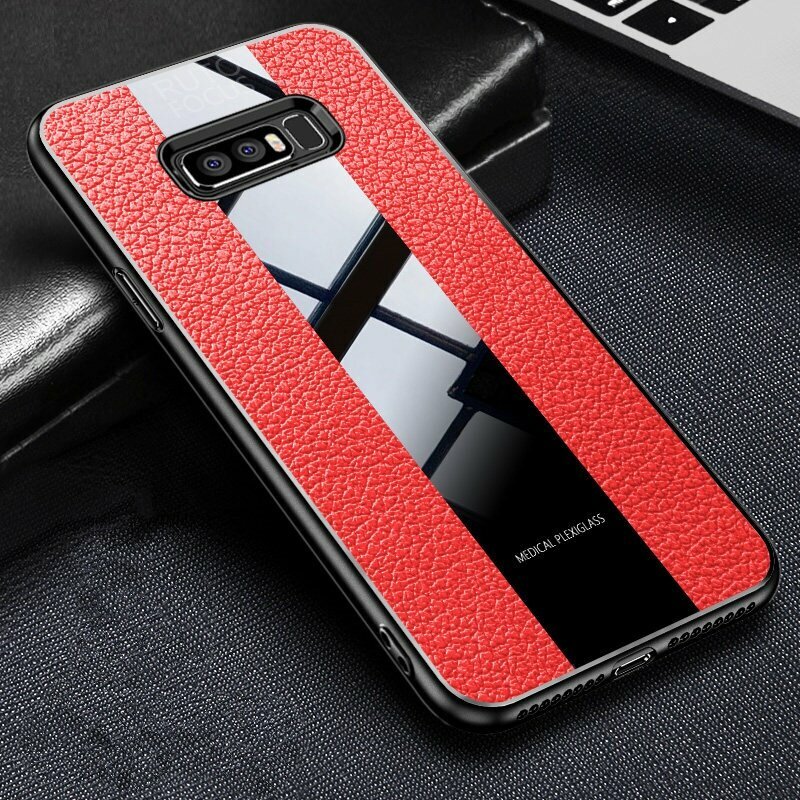 Отзывы на Чехол панель накладка MyPads для Samsung Galaxy S10 SM-G973F из качественного силикона с дизайном под кожу со стеклянной вставкой красная