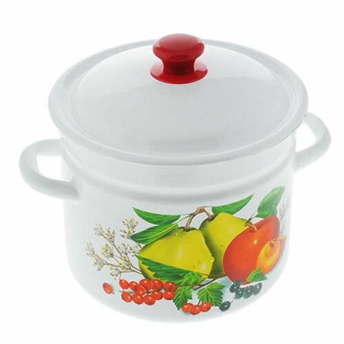 Кастрюля эмалированная 1,5 л с ободком белая с рисунком Фруктовая фантазия