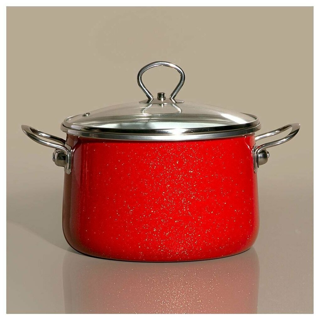 Кастрюля эмалированная со стеклянной крышкой Deluxe Red Объем: 5200 мл
