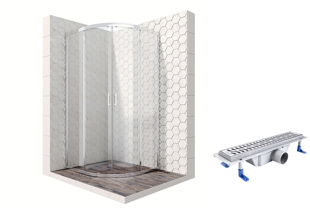 Комплект полукруглого душевого ограждения с линейным трапом Ambassador Kingston 14011104-ST3, с EasyClean, 90 х 90 см информация: