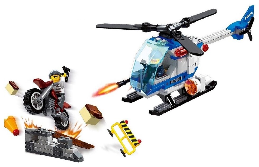 10 цен на Конструктор Погоня на небе 196 деталей / Вертолет / Мотоцикл / Полиция / 196 деталей