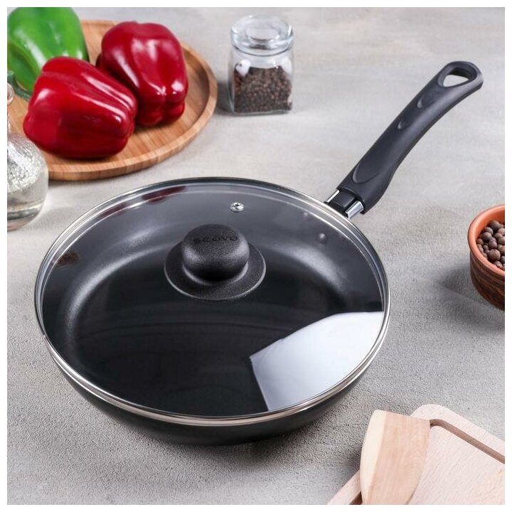 SCOVO Сковорода Consul, d=24 см, стеклянная крышка, пластиковая ручка, антипригарное покрытие, цвет чёрный информация: