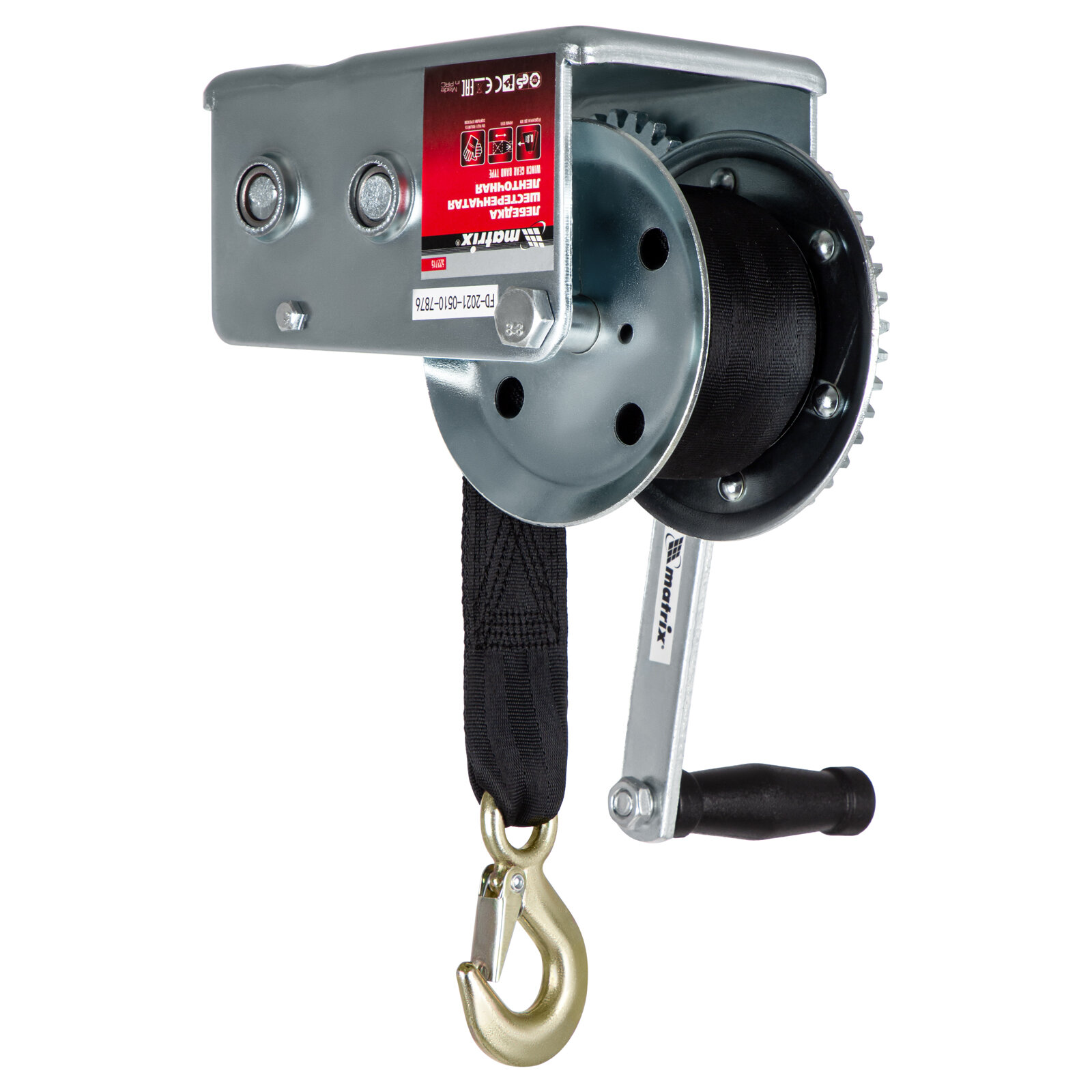 Лебедка шестеренчатая, тяга 0.8 т, ленточная Matrix информация: