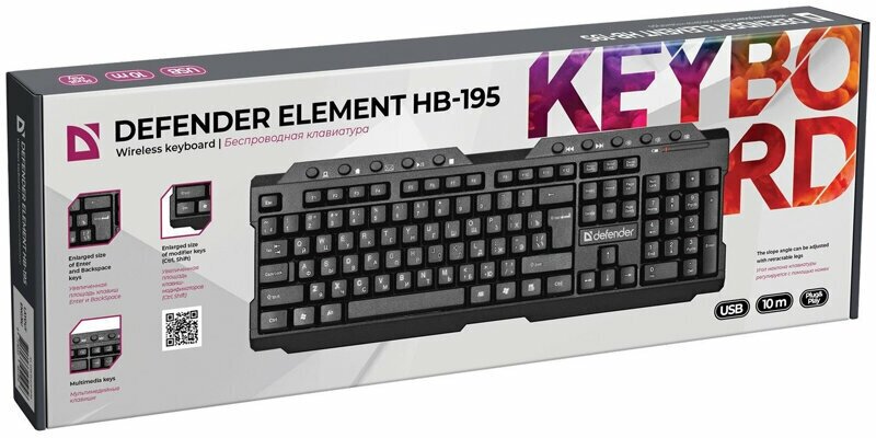 Defender Element HB-195 Defender Беспроводная клавиатура Element HB-195 RU, черный, мультимедиа 45195