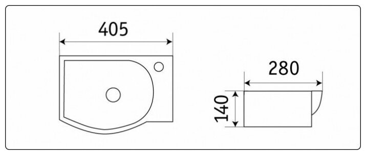 Накладная раковина в ванную комнату "Океан 90 правая", белая, 90х40