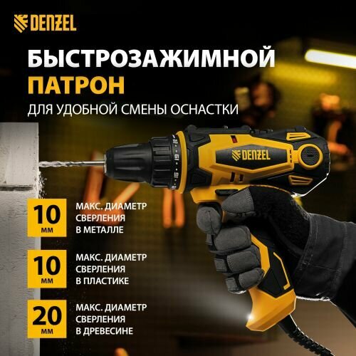 Дрель-шуруповерт аккумуляторная CDL-18-0, Li-Ion, 18 В Denzel