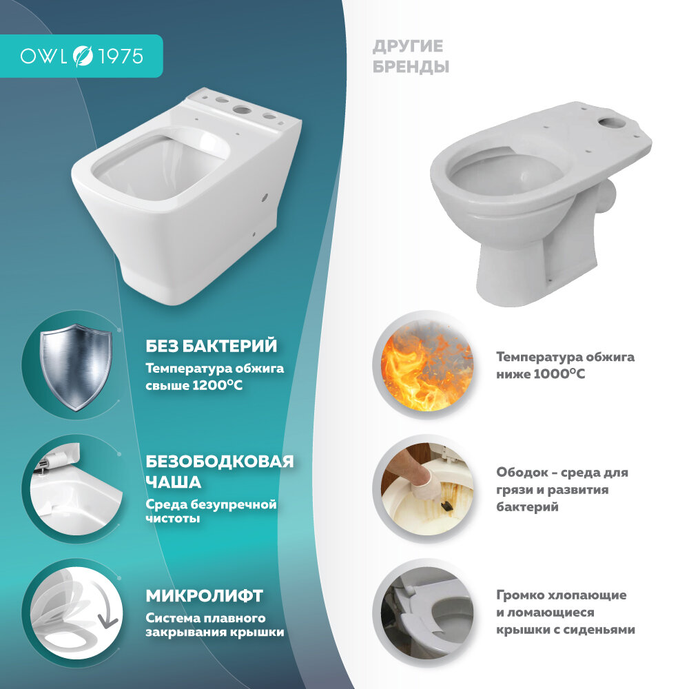 Чаша напольного безободкового унитаза с сиденьем микролифт OWL 1975 Gap Ruta-G OWLT200901 информация: